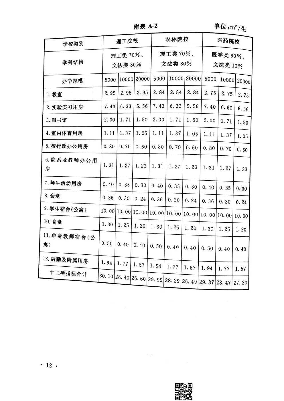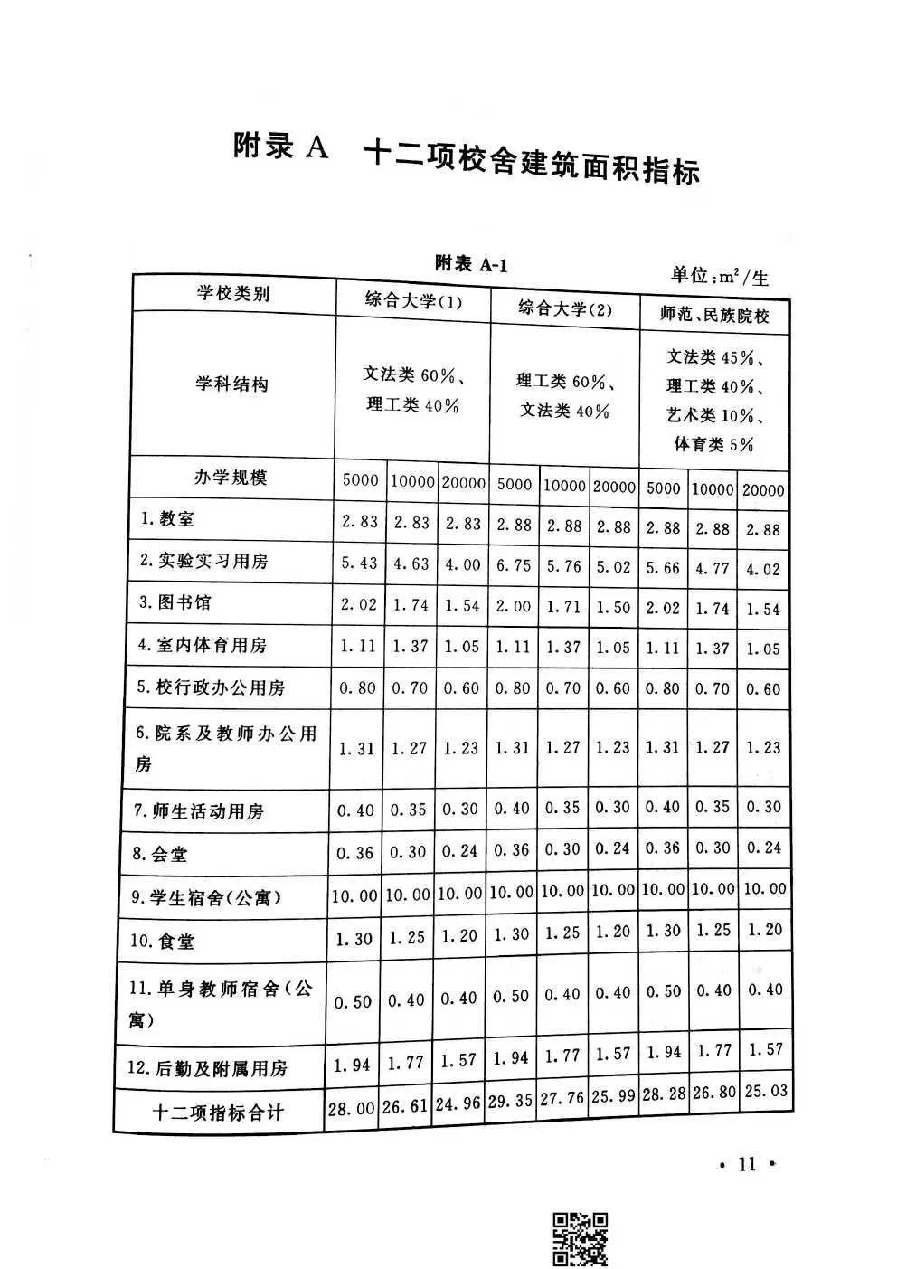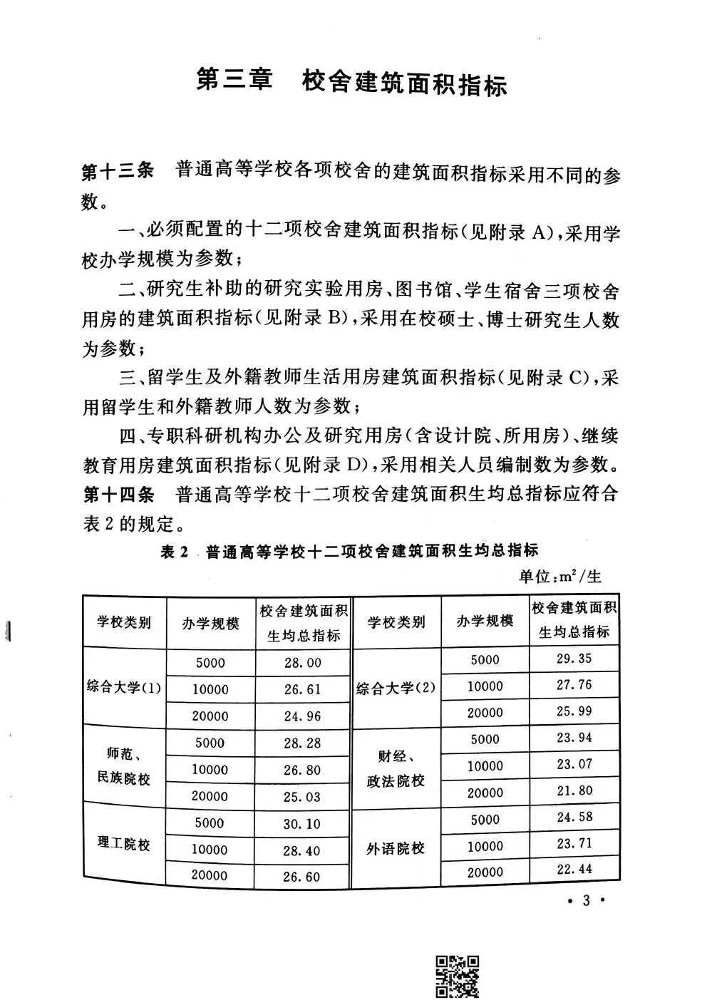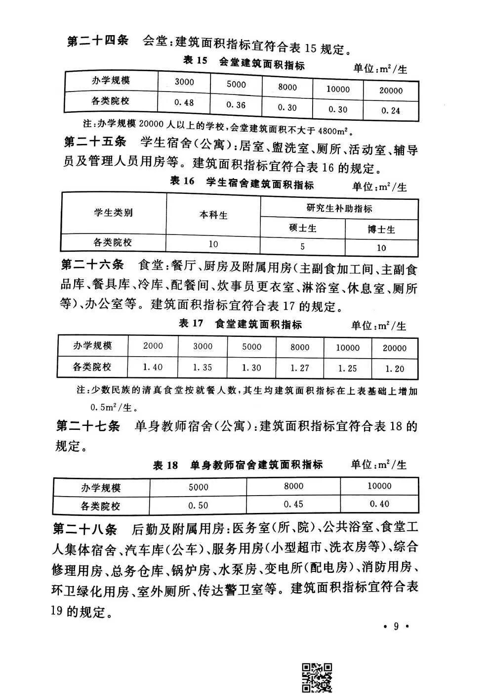 教育部《普通高等学校建筑面积指标》