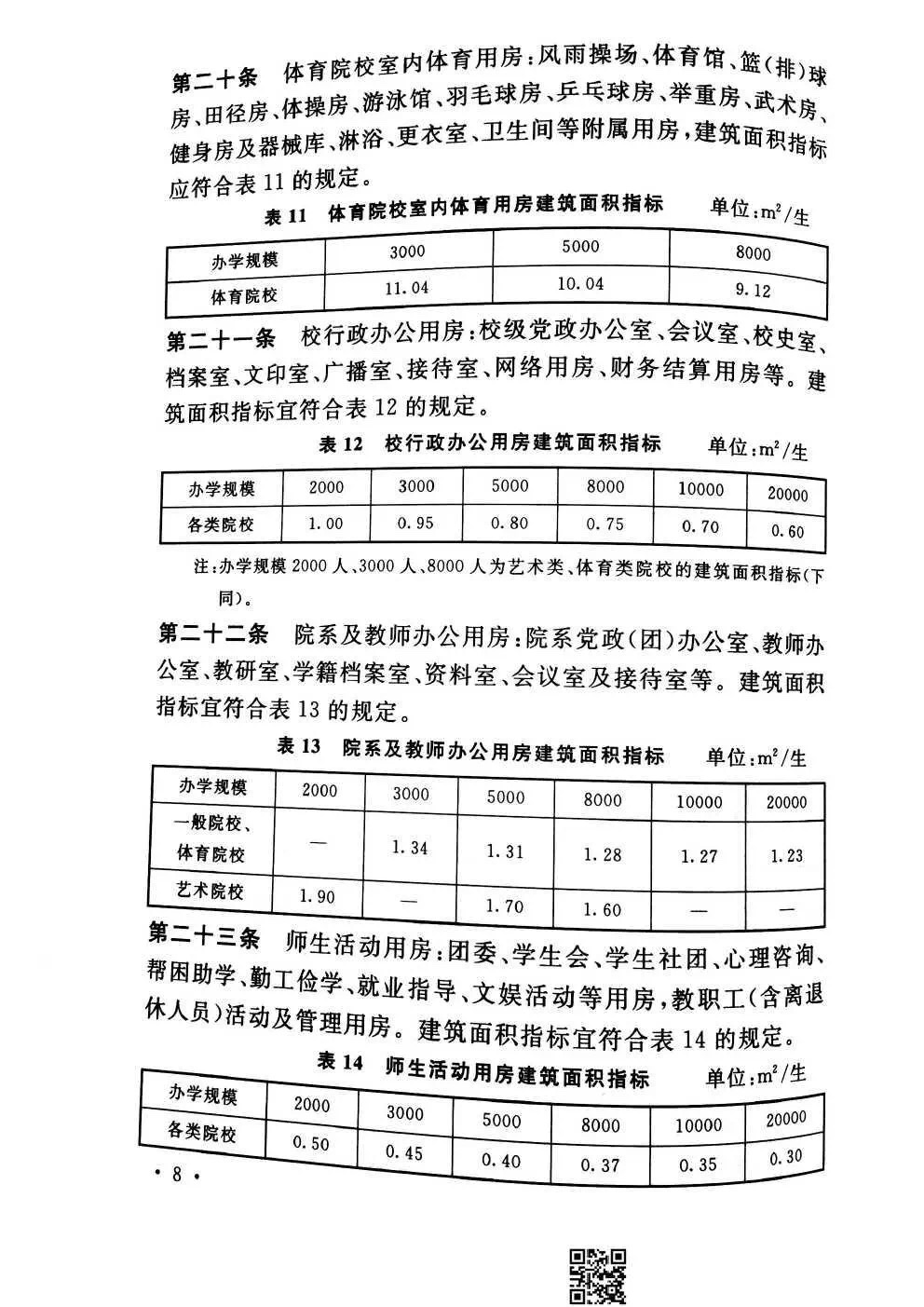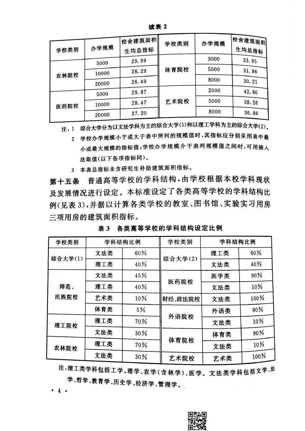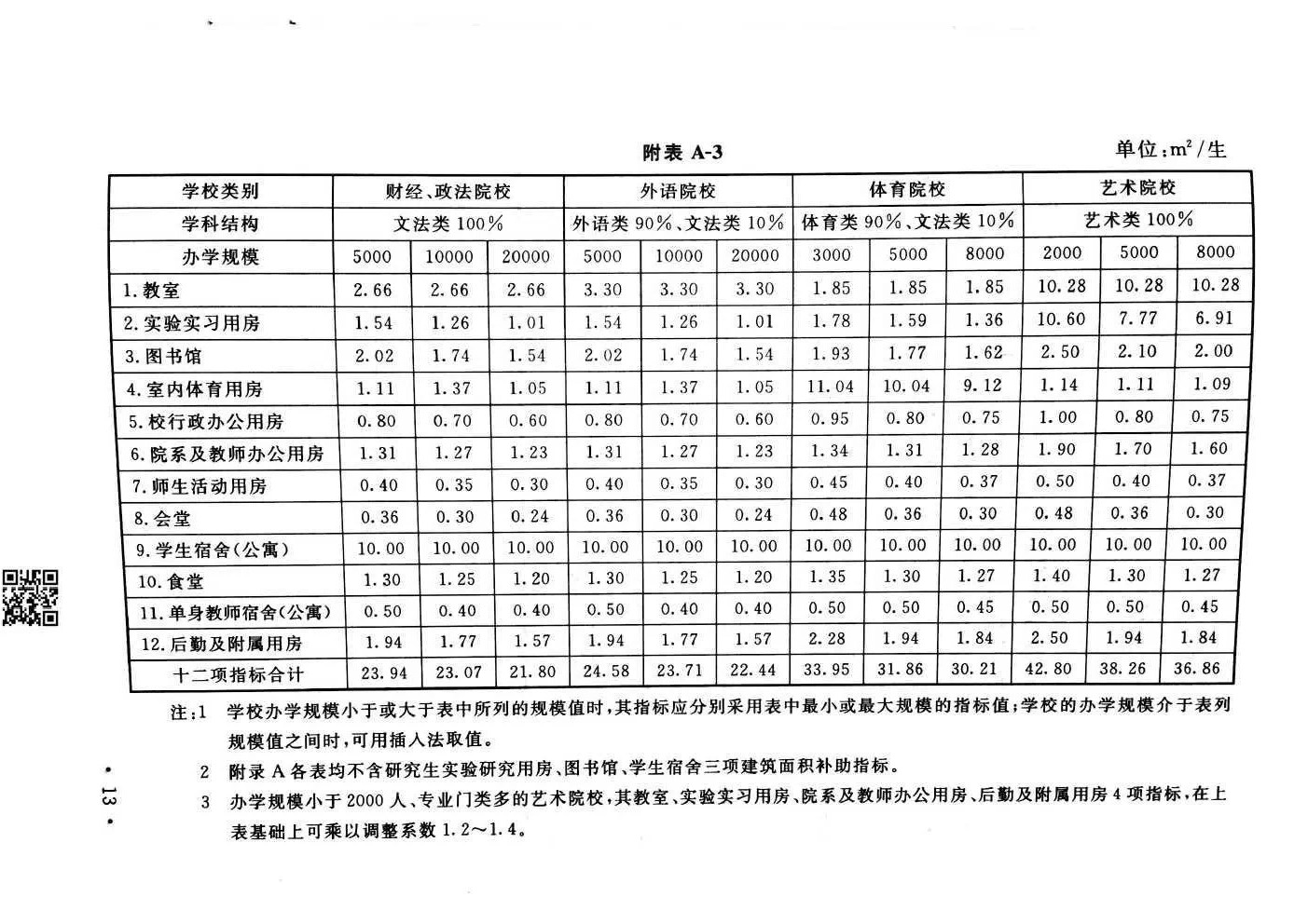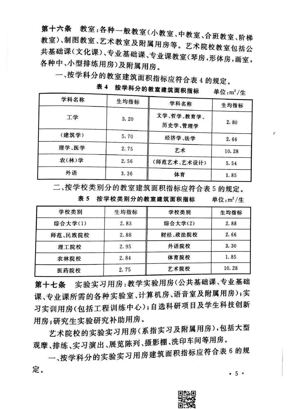 教育部《普通高等学校建筑面积指标》
